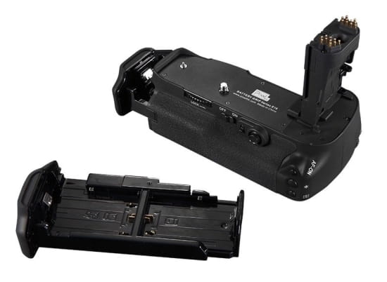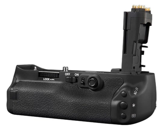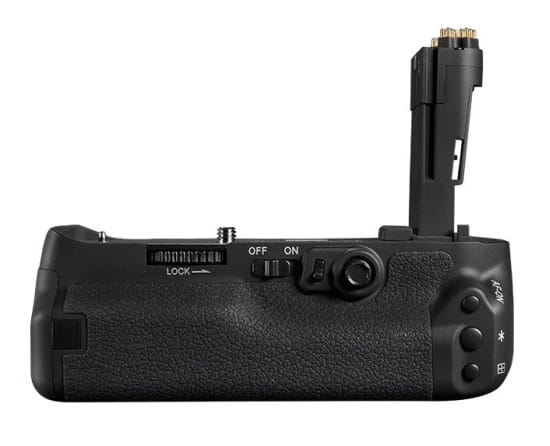 Poza spustem migawki grip jest wyposażony również w komplet niezbędnych przycisków pozwalających na kontrolowanie parametrów ekspozycji w czasie pionowego kadrowania. Tuż przy spuście migawki znajduje się pokrętło o funkcjach analogicznych z funkcjami pokrętła na body. Grip jest wyposażony w zaczep paska, metalowy gwint mocowania statywu oraz wyłącznik ON-OFF gripa