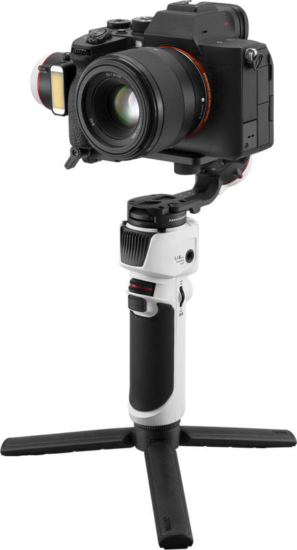 Aparat może być łatwo przymocowany do gimbala za pomocą nowo zaprojektowanej płytki szybkiego uwalniania, która pozwala na zmianę baterii w aparacie bez konieczności ponownego wyważania. Kolejną ekscytującą cechą jest nowa wbudowana dioda LED o mocy 800 lumenów w górnej części gimbala, poziom temperatury barwowej może być ustawiony w zakresie 3000-5400K. Dioda LED ma również możliwość podłączenia magnetycznych filtrów światła, które są dostępne w czterech różnych kolorach.