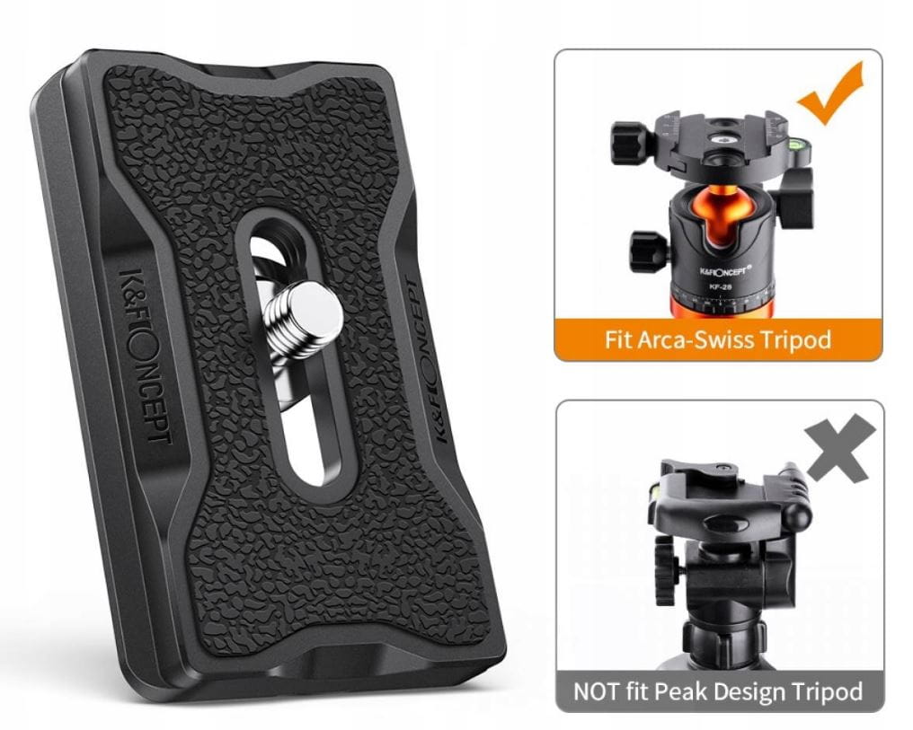 Szybkozłączka serii KF-28 pasuje do wszystkich głowic z uniwersalnym mocowaniem typu QR ARCA-SWISS.