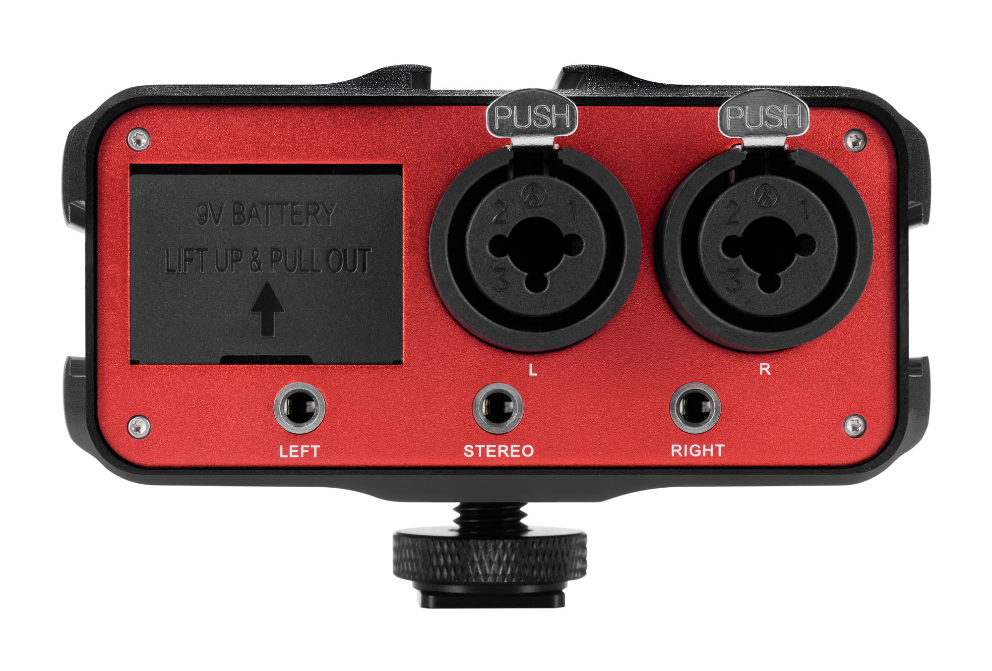 Aluminiowa obudowa, zaopatrzona w zimną stopkę oraz mocowanie statywowe żeńskie 1/4", pozwala na montaż urządzenia na aparacie lub statywie. Trzy mocowania typu sanki w standardzie ISO umożliwiają zainstalowanie dodatkowych akcesoriów, takich jak: mikrofony, odbiorniki radiowe czy lampy.