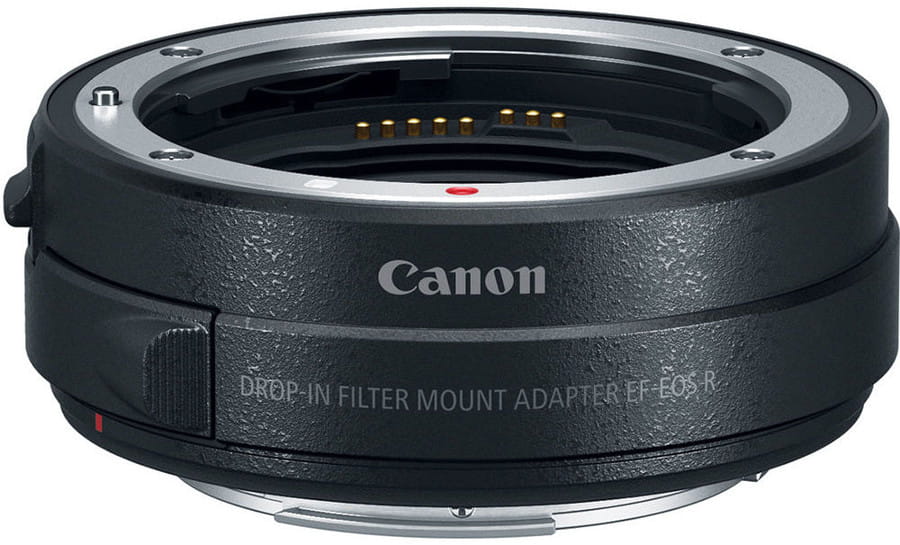 Adapter mocowania EF-EOS R z uchwytem filtra wsuwanego działa jak adapter mocowania EF-EOS R, a dodatkowo umożliwia korzystanie z filtrów wsuwanych, co eliminuje konieczność montażu filtrów z przodu obiektywu. Jest to szczególnie przydatne w przypadku obiektywów szerokokątnych z dużym przednim elementem optycznym. Adapter jest dostępny z filtrem szarym (V-ND)2 lub filtrem polaryzacyjnym (C-PL). Ponadto można używać filtra przezroczystego (CL) w celu fotografowania bez specjalnych efektów.