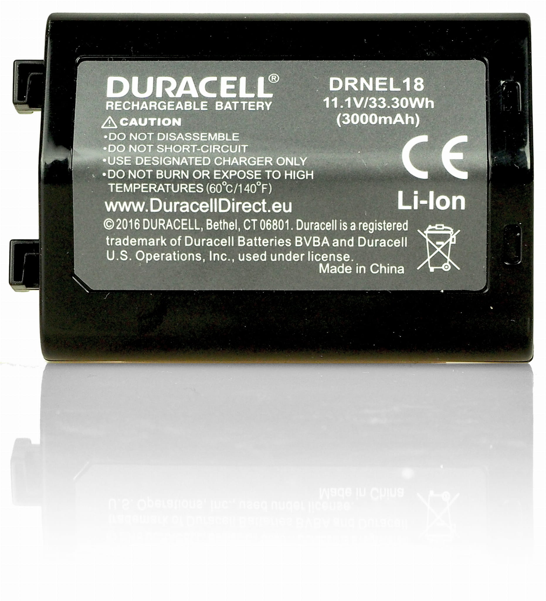| Cechy produktu | w 100% kompatybilny zamiennik akumulatora Nikon EN-EL18 kompatybilny z oryginalnymi ładowarkami oraz zamiennikami produkt renomowanego producenta baterii Duracell 3 letnia gwarancja akumulator litowo-jonowy napięcie: 11,1 V pojemność: 3000 mAh waga: 168 g |