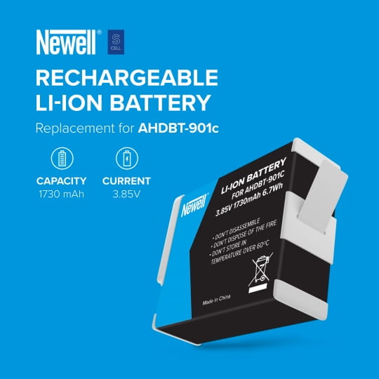 Newell SupraCell AHDBT-901c to innowacyjny zamiennik akumulatora przeznaczony do kamerek sportowych. Zastosowane w nim ogniwa i nowoczesna elektronika zadowolą nawet najbardziej wymagających użytkowników. Linia SupraCell powstała specjalnie z myślą o intensywnym użytkowaniu, a także bardzo częstym ładowaniu i rozładowywaniu. Prezentowane ogniwo oferuje 1730 mAh pojemności. Dzięki odporności na skrajne temperatury, z powodzeniem wykorzystasz je podczas pracy nad filmami realizowanymi zarówno w zimowym krajobrazie, a także podczas upalnych dni. Dzięki 40-miesięcznej gwarancji rewolucyjny akumulator Newell SupraCell będzie towarzyszył Ci przez długie lata, a w razie jakiejkolwiek awarii zostanie szybko wymienione przez producenta na nowy!