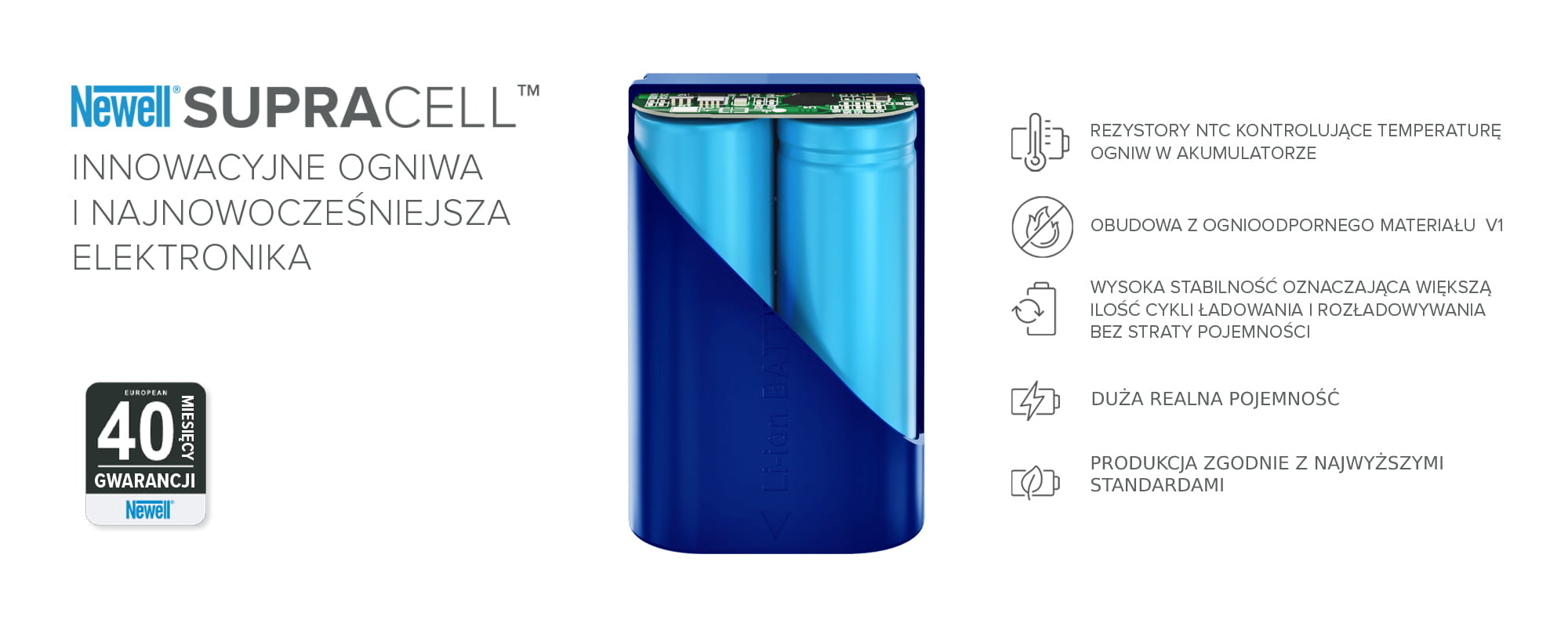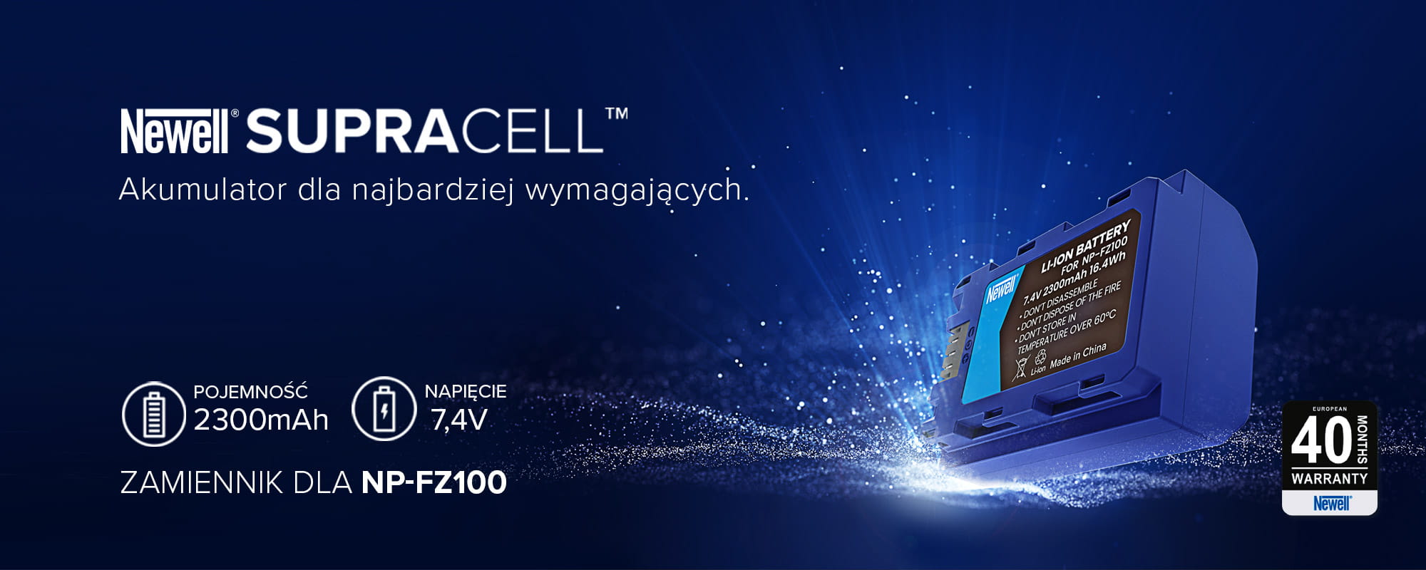 Newell SupraCell NP-FZ100 to innowacyjny zamiennik akumulatora przeznaczony do aparatów fotograficznych. Zastosowane w nim ogniwa i nowoczesna elektronika zadowolą nawet najbardziej wymagających użytkowników. Linia SupraCell powstała specjalnie z myślą o intensywnym użytkowaniu, a także bardzo częstym ładowaniu i rozładowywaniu.