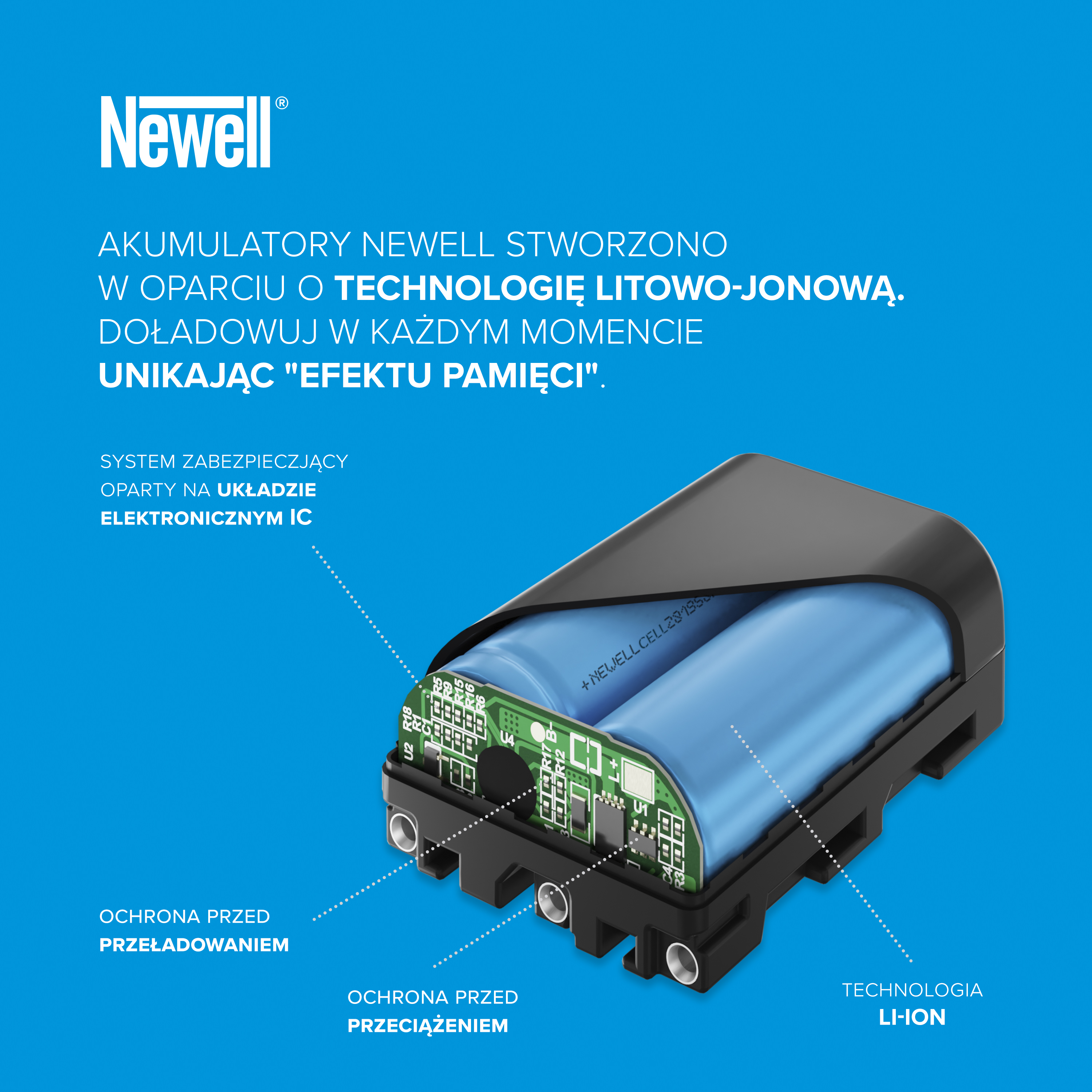 Prezentowane ogniwo współpracuje zarówno z systemowymi ładowarkami, ładowarkami marki Newell, jak również z zamiennikami.