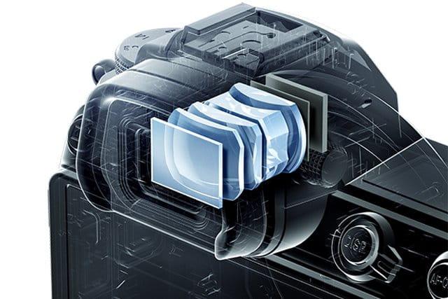 Czuły hybrydowy system AF zapewnia doskonałą ostrość i szerokie pokrycie kadru. Ponadto, po wybudzeniu z trybu czuwania aparat powraca do wybranego pola AF. Pomiar ekspozycji do -4 EV jest dostępny w przypadku fotografowania obiektywem f/2 (lub jaśniejszym).