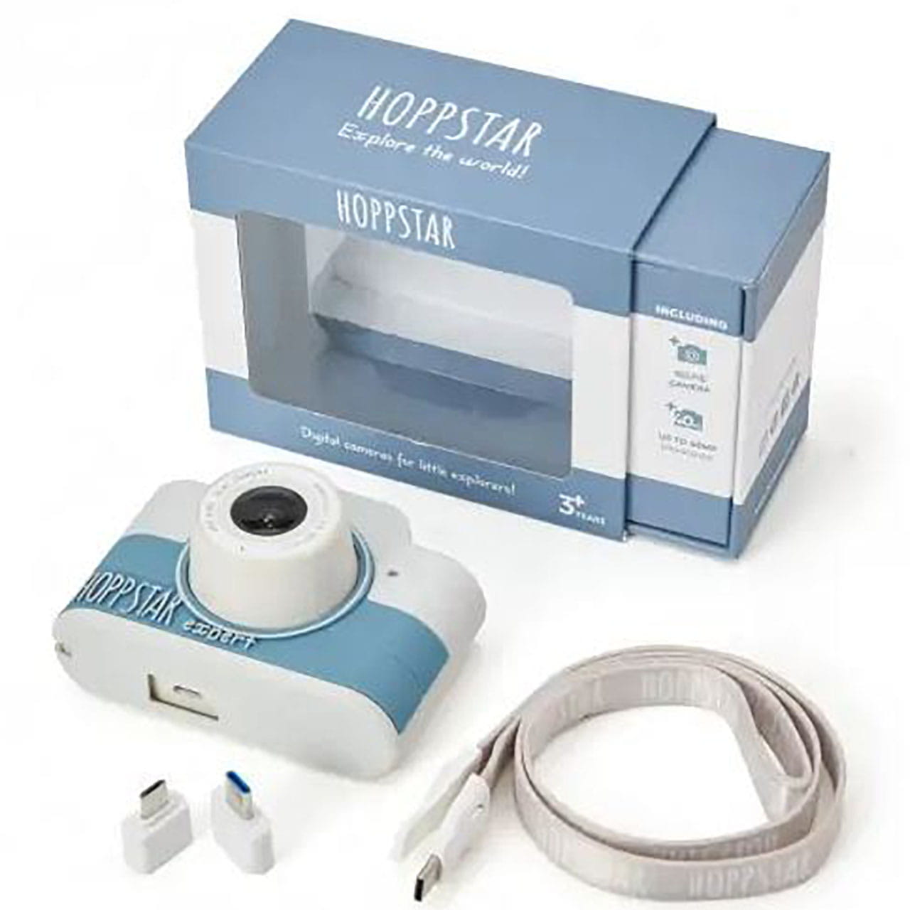 Aparat cyfrowy Expert Hoppstar to idealny aparat fotograficzny dla dzieci ze wszystkimi funkcjami potrzebnymi na co dzień: przednim obiektywem, dodatkowym aparatem do selfie, kartą pamięci 16 GB i funkcją kamery. Wyposażony w łatwe w obsłudze, intuicyjne menu oraz wymienne silikonowe etui chroniące przed uderzeniami i upadkami. Ten wyjątkowy aparat fotograficzny dla dzieci wykonany został z najwyższej jakości materiałów. Jest super-lekki i przyjemny w użyciu.