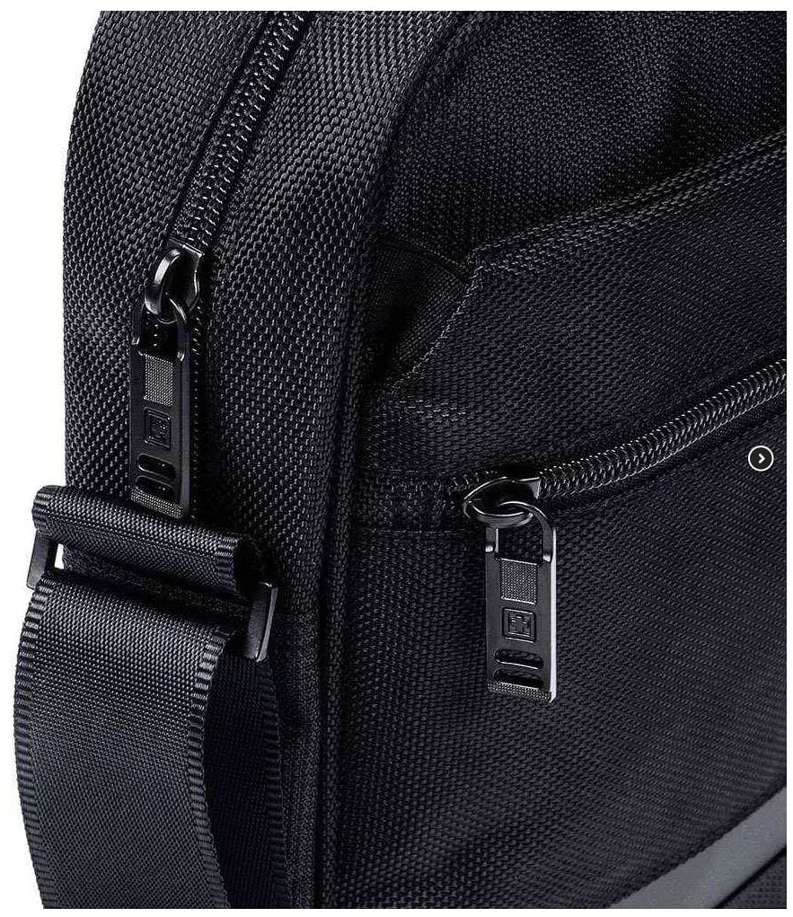 Torba na ramię Solothurn to wspaniały organizer, w którym w prosty sposób ulokujesz swoje najważniejsze rzeczy. Odpowiednio regulowany pas pozwoli Ci na jej szybkie założenie. Wykonana została z wysokiej jakości materiału, dzięki czemu jest w pełni wentylowana. Gwarantuje Ci to komfort noszenia organizera Solothurn w czasie każdej pory roku. Został on wyposażony w komorę główną oraz specjalne kieszenie, w których widoczne są wytrzymałe zamki. Otwieranie poszczególnych kieszeni jest więc dla nas bardzo proste. W komorze głównej znajdziemy wzmocnioną przegrodę na tablet oraz organizer z miejscem na dokumenty itp. Resztę potrzebnych nam rzeczy zmieścimy w dwóch zapinanych na zamek kieszeniach. Dzięki takiej konstrukcji Solothurn posiada szerokie zastosowanie podczas podróżowania, jak i wykonywania pracy.