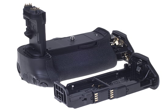 Aparat z gripem może być zasilany do wyboru z dwóch baterii typu LP-E6N oraz akumulatorami i bateriami AA.