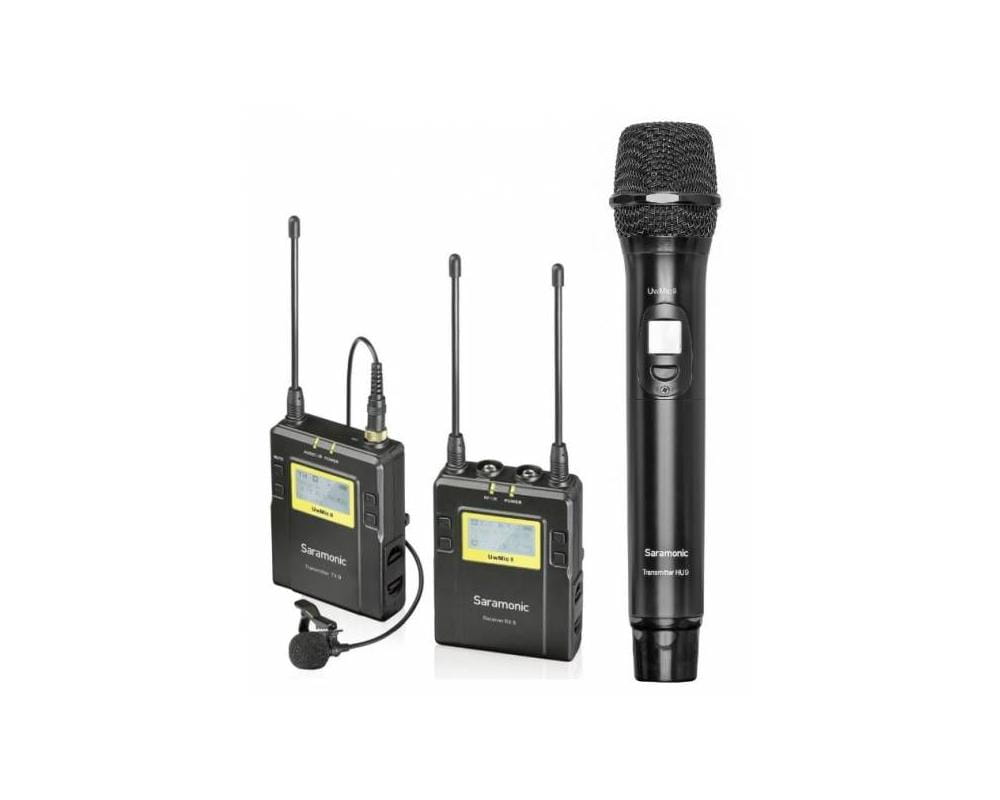 Saramonic RX9 + TX9 + HU9 to odbiornik, nadajnik oraz dwa rodzaje mikrofonów: krawatowy i sceniczny wchodzące w skład systemu bezprzewodowej transmisji dźwięku UwMic9. Możliwość bezprzewodowego przesyłania sygnału audio między szeroką gamą urządzeń docenią operatorzy kamer, reporterzy oraz vlogerzy.