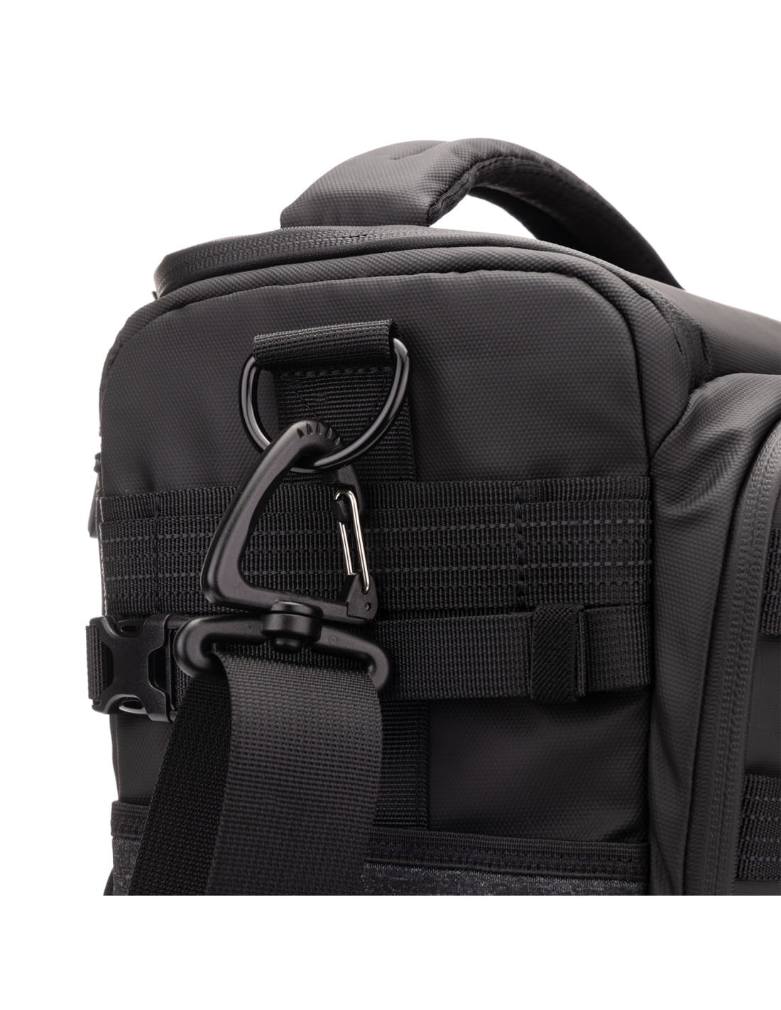 Torba została zaprojektowana z myślą o komforcie użytkownika, który często przenosi ze sobą ciężki sprzęt. Pas naramienny z shoulder padem sprawia, że ciężar torby jest równomiernie rozłożony, co znacząco poprawia komfort nawet podczas długotrwałego noszenia. Dzięki temu, jeśli czeka Cię długa sesja zdjęciowa, torba nie będzie sprawiać wrażenia obciążenia.