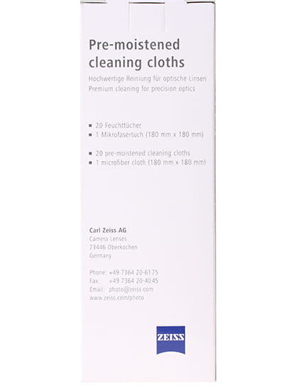 Carl Zeiss chusteczki + ściereczka z mikrofibry do czyszczenia optyki (Pre-Moistened Cleaning Cloths 2096-687)