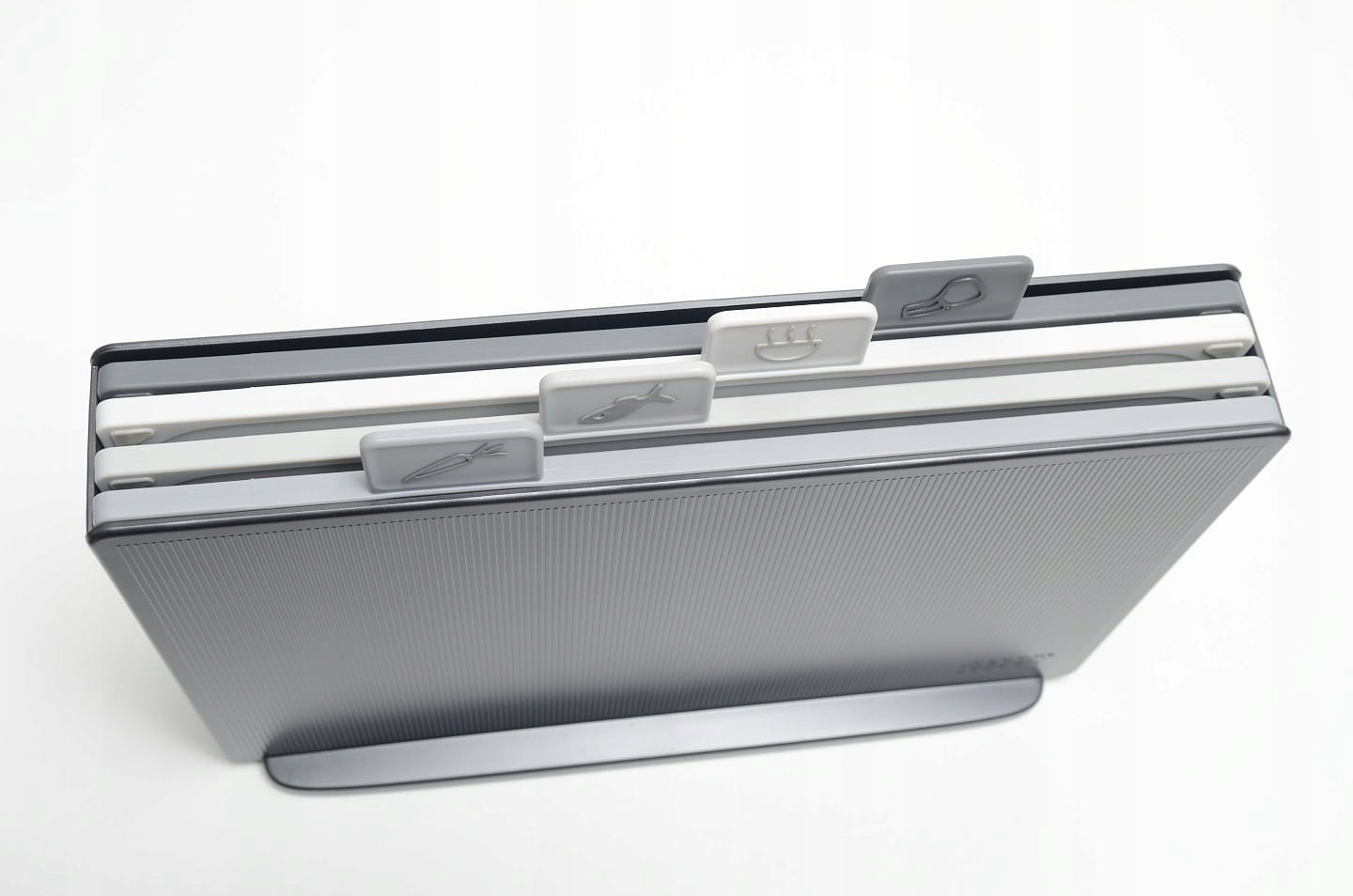 Deski są oznaczone różnymi symbolami, dzięki czemu zawsze wiesz, której użyć do pokrojenia konkretnego składnika. To rozwiązanie pozwala na zachowanie maksimum higieny w kuchni.