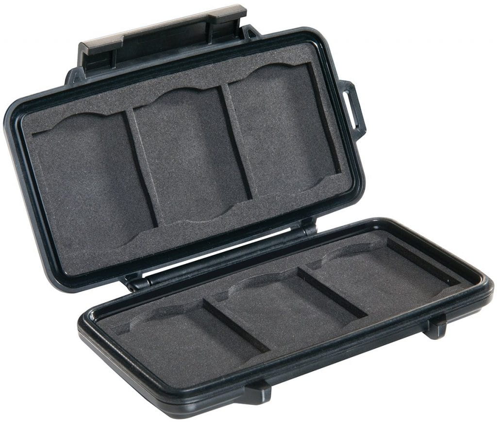 Case Peli™ 0945 cechuje się niesamowitą wytrzymałością, wodoodpornością i pyłoszczelnością. Case jest lekki i wytrzymały. Zamykana na solidny zatrzask z możliwością powieszenia go na karabińczyku. Wszystkie metalowe części wykonane są ze stali nierdzewnej. Zamknięcie wykonane jest z żywicy ABS, reszta z Poliwęglanu. Krawędzie skrzynki są zaokrąglone co rozprasza siłę uderzenia. Wnętrze jest wyłożone dedykowanym wypełnieniem które stabilizuje przedmiot w środku. Case zmieści 6 kompaktowych kart pamięci jednocześnie! Dożywotnia gwarancja producenta na jakość wykonania.