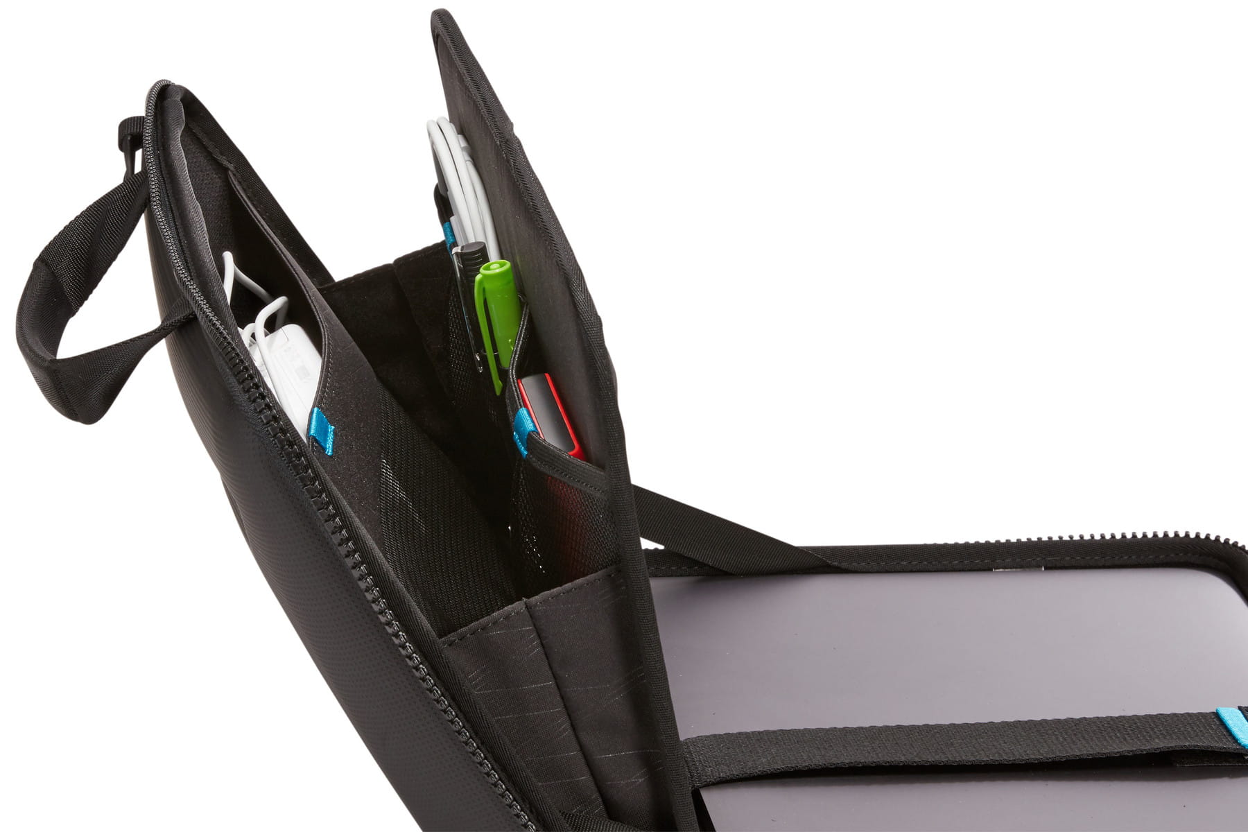 - Przechowuj akcesoria i sznurki w wewnętrznych kieszeniach