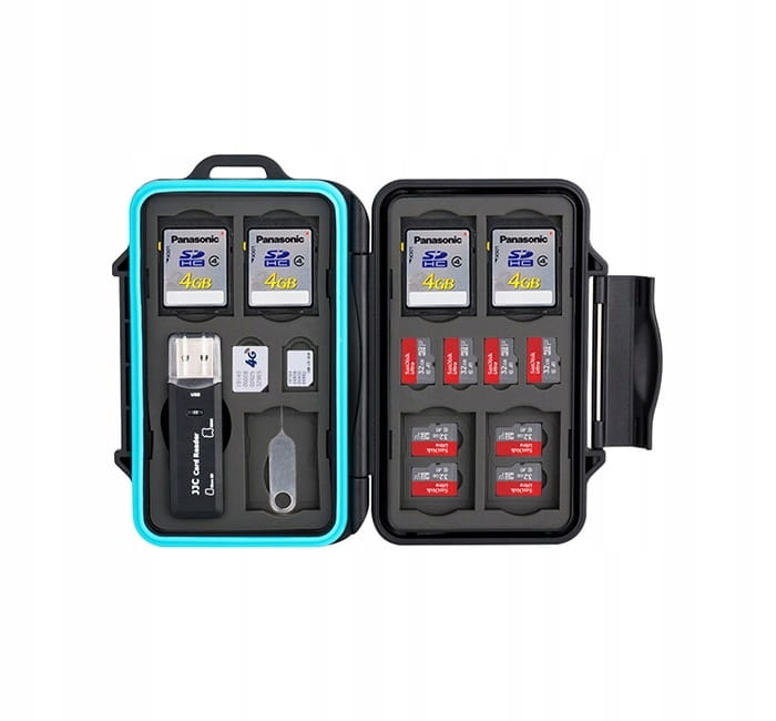 Wybierając się na wakacje lub zlecenie w plenerze zabieramy ze sobą większą liczbę kart pamięci, których przechowywanie często jest problematyczne, a trzymanie w kieszeni może doprowadzić do zabrudzenia, problemów z odczytem lub nawet zniszczenia. Z myślą o takich sytuacjach zaprojektowano niniejsze etui mogące pomieścić do 12 kart pamięci: 8 kart SD i 4 karty CF.