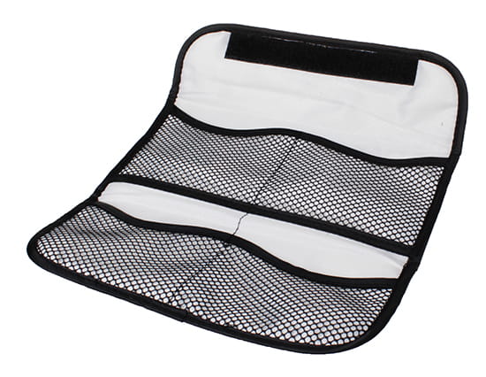 Etui wykonane z wytrzymałego, estetycznego, czarnego nylonu, posiada zapięcie na rzep. Cztery osobne kieszonki z siateczki dają gwarancję bezpieczeństwa filtrów - nie trzeba się obawiać, że filtry będą się o siebie rysować...