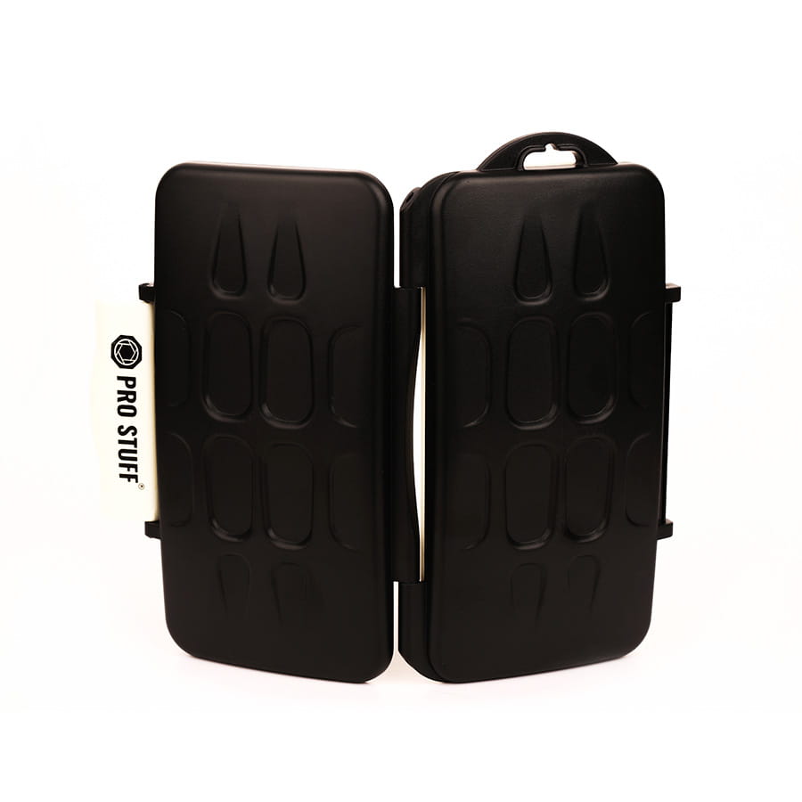 Prezentowane w tej ofercie etui na karty pamięci Prostuff jest bardzo poręczne, a co za tym idzie wygodne w użytkowaniu. Zostało wykonane z odpornego na uszkodzenia mechaniczne i bardzo wytrzymałego tworzywa sztucznego. Dla zwiększenia bezpieczeństwa kart pamięci pojemnik wyposażono w gumowe wykończenie. Uwagę zwraca także solidne zapięcie, które chroni zawartość pojemnika w każdej sytuacji. Futerał na karty pamięci jest lekkie (jego masa to zaledwie 140 g) oraz odporne na wodę i wstrząsy. Ma też kompaktowe rozmiary (14 x 7,5 x 2,5 cm), które nie sprawiają większego problemu, gdy będziesz chciał zabrać je ze sobą w podróż czy na sesję fotograficzną.
