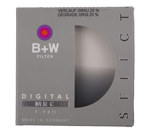 Filtr B+W połówkowy szary 25% został wykonany z najwyższej jakości szkła optycznego Schotta, zapewniającego zwiększoną wytrzymałość oraz żywotność. Filtr dedykowany jest do aparatów oraz kamer video. Unikatowa konstrukcja szkła eliminuje prześwietlenie jasnych partii obrazu, umożliwia dłuższe naświetlenie ciemnej części kadru, a także pozwala na wydobycie z cienia większej ilości szczegółów.