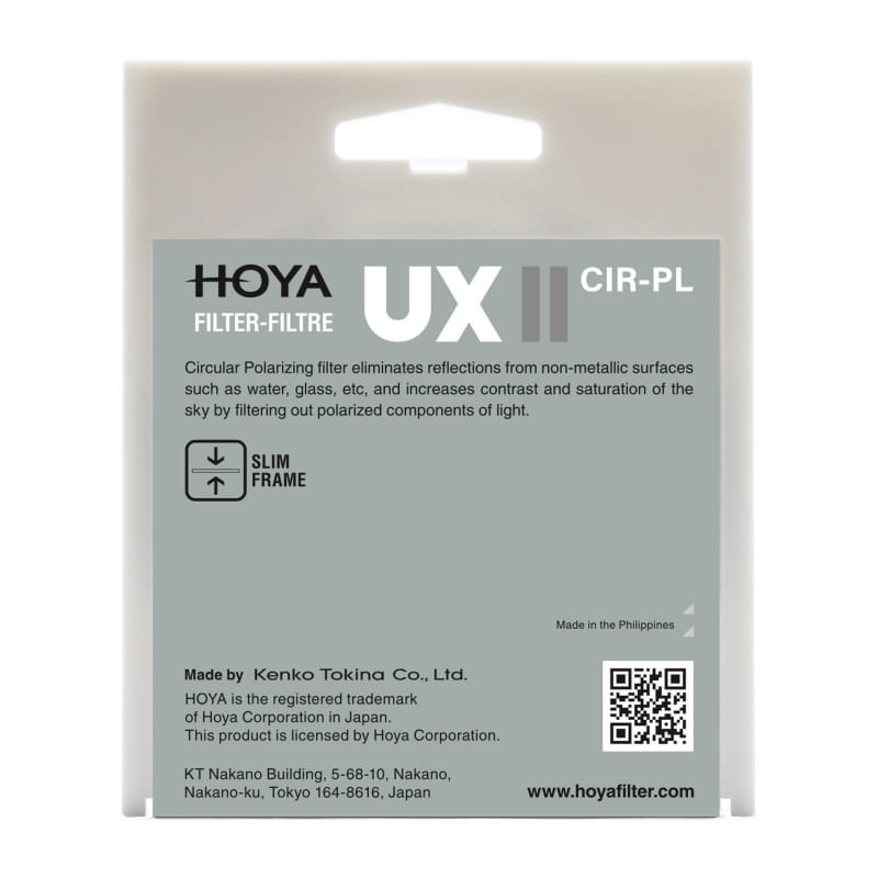 Filtr UX II CIR-PL może być używany zarówno z aparatami filmowymi, jak i cyfrowymi. Konstrukcja filtrów polaryzacyjnych zawiera folię polaryzacyjną umieszczoną między dwoma szkłami, a przednia ramka umożliwia obracanie, co pozwala ustawić filtr pod żądanym kątem. Gwint umiejscowiony na filtrze umożliwia zamontowanie innych filtrów oraz pokrywek na obiektywy. Wąska ramka filtra UX II CIR-PL zapewnia brak winietowania nawet w przypadku obiektywów szerokokątnych.