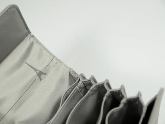 Wykonany z wysokiej jakości materiału, przegrody pomiędzy filtrami są odpowiednio sztywne oraz pokryte miękką tkaniną. Pokrowiec zamyka się magnetycznie i ma uchwyt do paska.