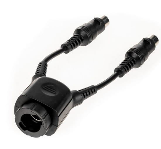 Genesis PowerPack 2in1 Cable pozwala na podłączenie lampy Genesis Reporter 180/360 do dwóch portów zasilania w akumulatorze PowerPack 45. Skutkuje to przyśpieszeniem ładowania lampy o 45%.