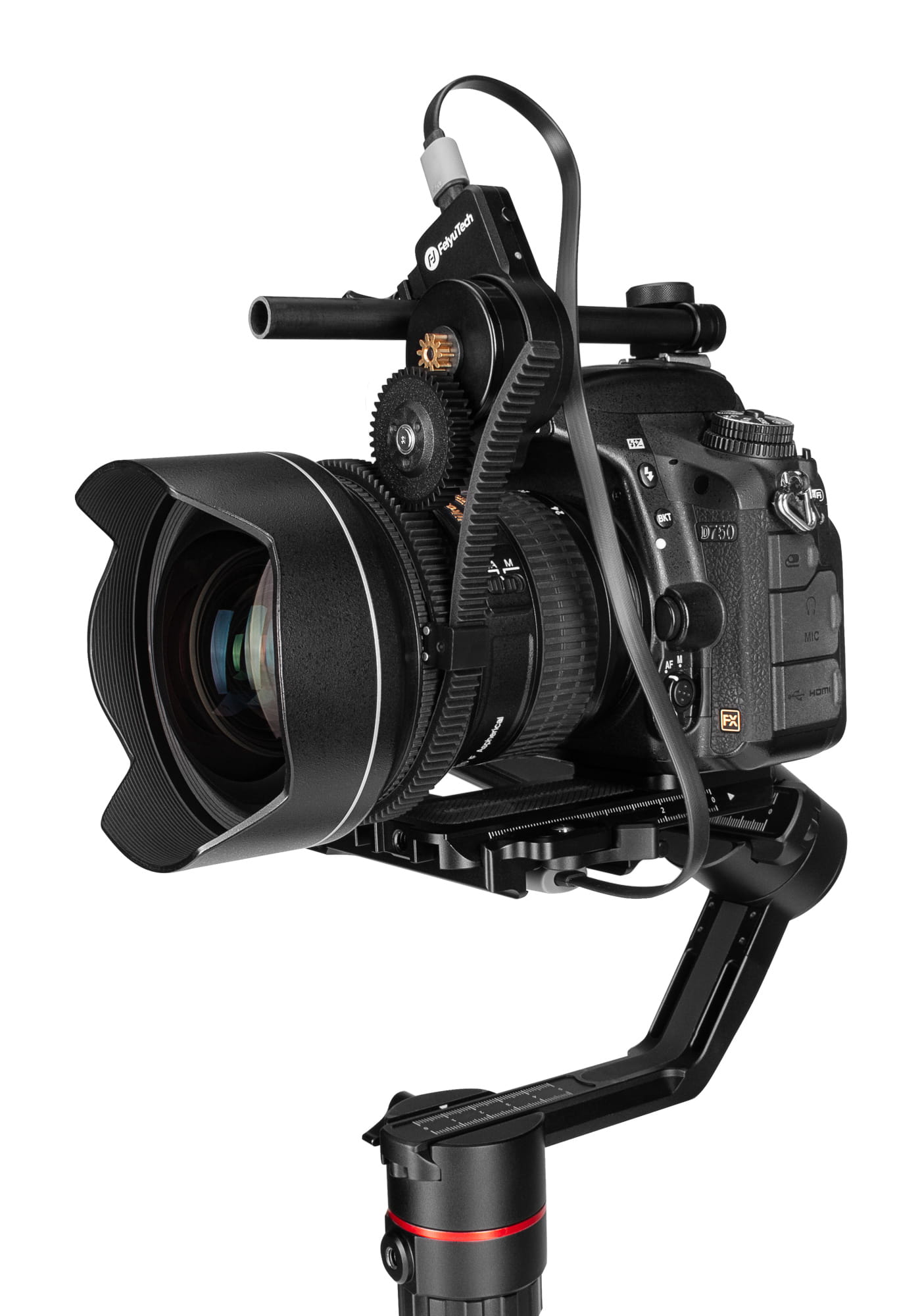 FeiyuTech Follow Focus V2 to zaawansowany moduł ustawiania ostrości zaprojektowany do współpracy z gimbalami FeiyuTech z serii AK. Akcesorium pozwala kontrolować ustawienia płaszczyzny ostrości przy pomocy pokrętła wielofunkcyjnego, znajdującego się na uchwycie stabilizatora. Wyposażony został w ciche bezszczotkowe silniki. Posiada osobny panel sterowania pozwalający na kalibracje skoku oraz zaprogramowanie automatycznej zmiany ustawienia ostrości.