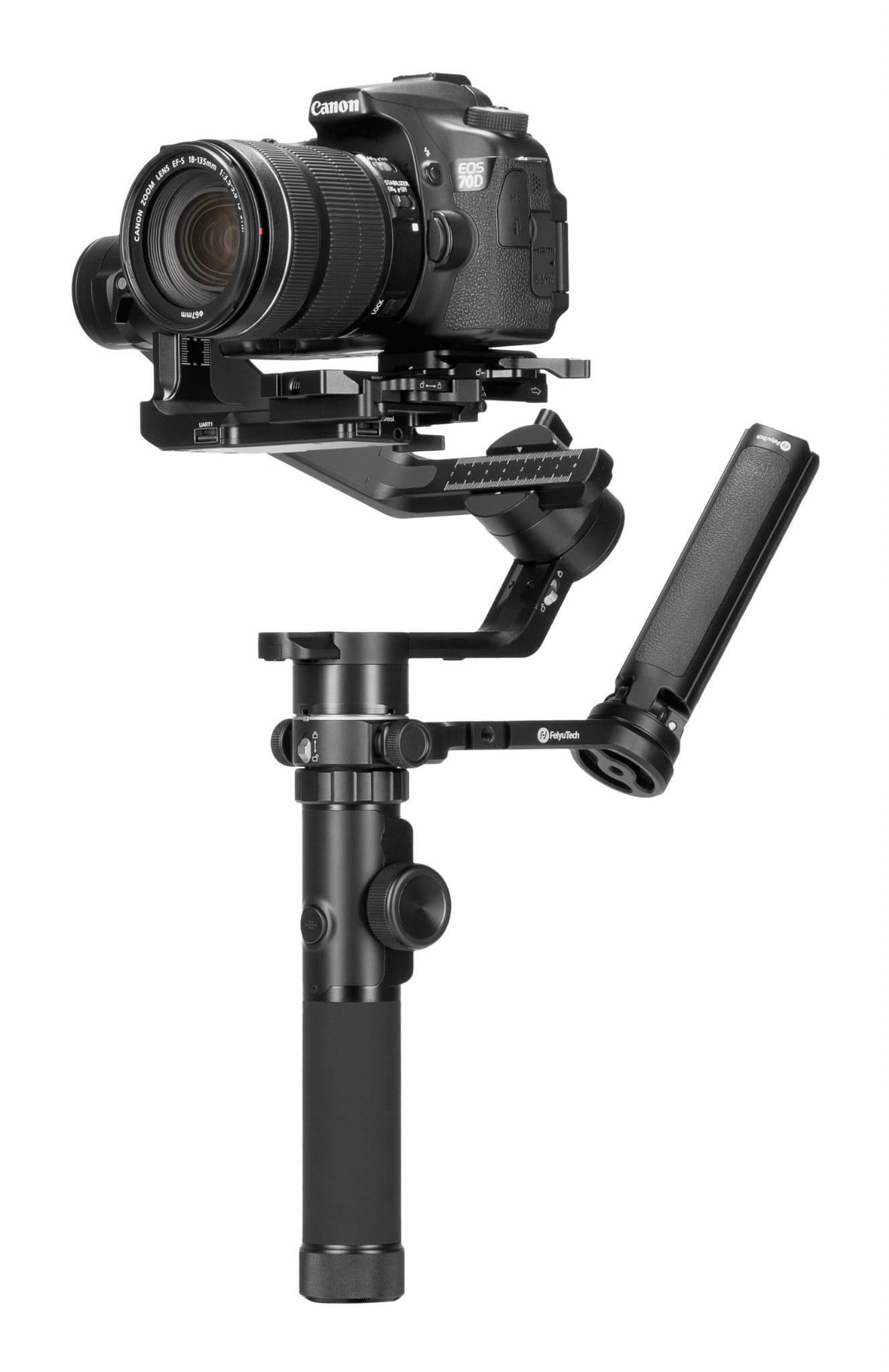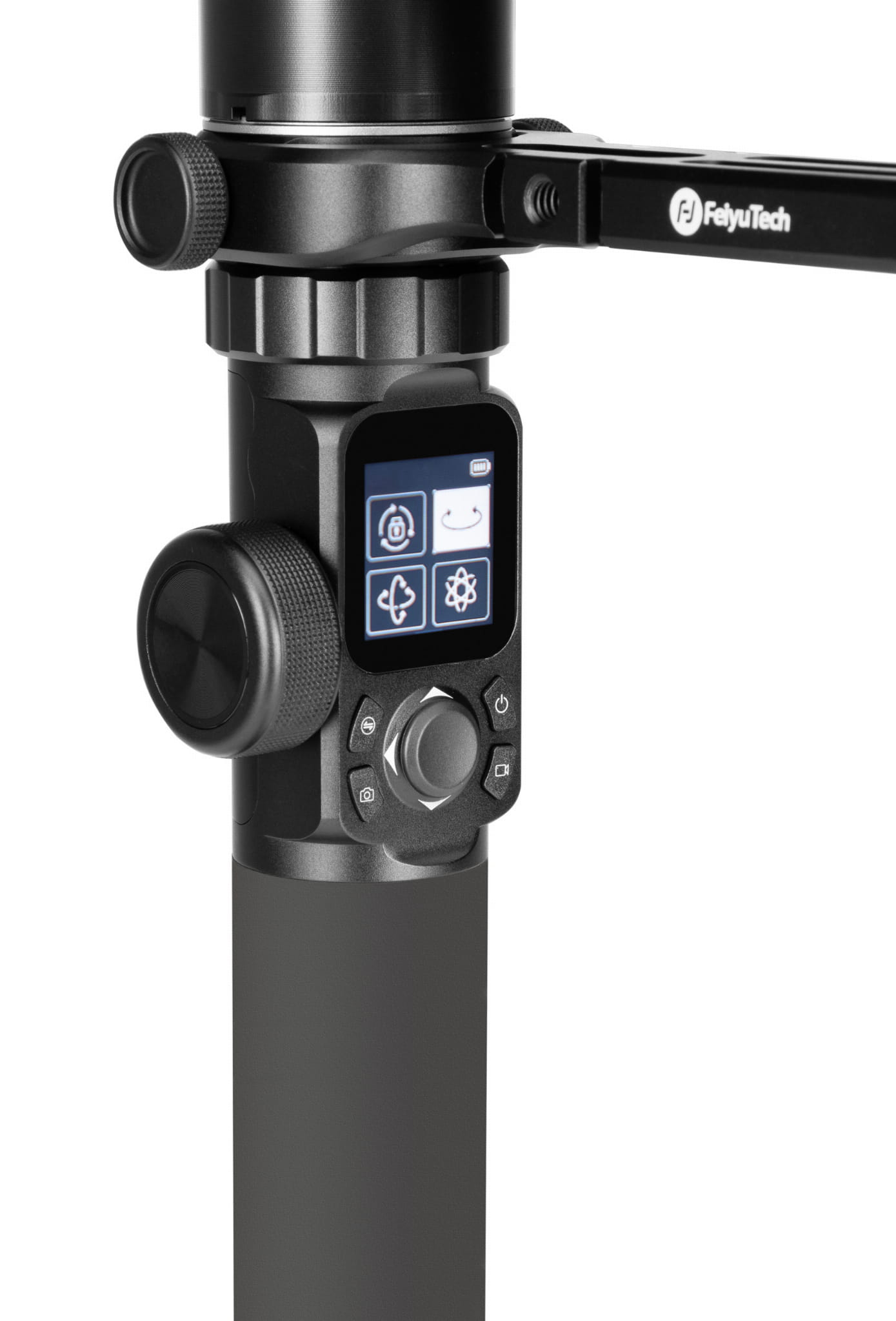 Klasyczne sterowanie ruchami gimbala, za pomocą połączonej przez BT aplikacji mobilnej FeiyuON, zostało rozszerzone o zdalną kontrolę parametrów pracy kamery czy aparatu z poziomu stabilizatora. Dzięki temu operator zyskuje znacznie większy komfort w trakcie rejestracji ujęć. Wszystko to przy wykorzystaniu przycisków oraz pokrętła funkcyjnego, umieszczonych na rączce stabilizatora.