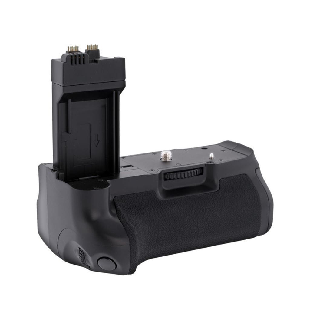 Battery pack umożliwia lepsze trzymanie aparatu, poprawia komfort obsługi podczas robienia zdjęć w układzie pionowym oraz pozwala zwiększyć liczbę zdjęć możliwych do zrobienia jednym kompletem baterii.