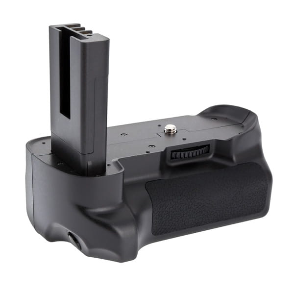 Po zastosowaniu battery packa Alpha Digital MB-D5000 aparat może być zasilany do wyboru z jednej lub dwóch baterii typu En-EL9a lub En-EL9e. Stosując dwie baterie można łączyć ogniwa różnych producentów i o rożnych pojemnościach. Aparat będzie wówczas pobierać prąd najpierw z jednej a następnie drugiej baterii. Kształt i konstrukcja urządzenia zostały tak dobrane, aby zapewnić jak największy komfort w czasie fotografowania zarówno w układzie poziomym jak i pionowym. Uchwyt pokryty jest specjalnym tworzywem gumowym, co zapewnia wygodny i bardzo pewny chwyt. W jego spodniej części znajduje się również gwint do mocowania aparatu na statywie. Battery pack umożliwia lepsze trzymanie aparatu, poprawia komfort obsługi podczas robienia zdjęć w układzie pionowym oraz pozwala zwiększyć liczbę zdjęć możliwych do zrobienia jednym kompletem baterii.