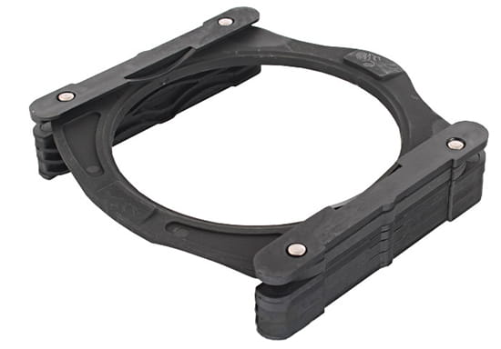 Uchwyt ma mocowania umożliwiające umocowanie trzech filtrów naraz. Po bokach posiada zaczepy umożliwiające stosowanie dedykowanej, kwadratowej osłony przeciwsłonecznej. Uchwyt obraca się wokół pierścienia mocującego, co jest bardzo przydatne przy filtrach połówkowych.
