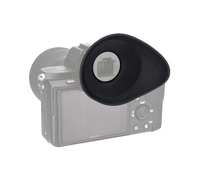 Duża muszla oczna zaprojektowana tak, aby wyeliminować problem światła wpadającego z boku do wizjera. Miękka guma sprawia, że muszla może być z powodzeniem wykorzystywana przez osoby noszące okulary, jednocześnie zapobiegając ich zarysowaniu. Muszla może być używana zarówno za pomocą prawego, jak i lewego oka - pozwala na to fukcja obracania o 360 stopni. Ponadto muszla jest funkcjonalna także w trakcie fotografowania w orientacji pionowej.