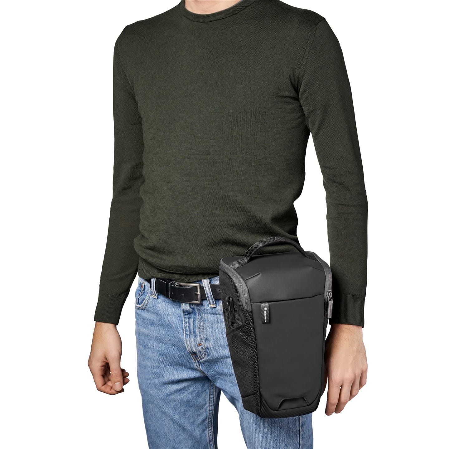 Kabura L Manfrotto Advanced² na lustrzankę to wszystko, czego potrzebujesz, gdy jesteś poza domem. Została specjalnie zaprojektowana, aby pomieścić standardowy zestaw fotografa, dzięki czemu będziesz wiedział, że masz przy sobie niezbędny sprzęt do pracy. Z powodzeniem włożysz do niej body z założonym obiektywem 70-200/2.8, a ponadto może zmieścić dodatkowe karty pamięci i niezbędne akcesoria.