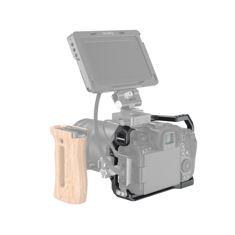 Możesz zamocować górny uchwyt SmallRig 1984 lub 2439 , drewniany uchwyt boczny SmallRig 2093 do robienia zdjęć z ręki oraz zacisk SmallRig 2981 do ochrony kabli HDMI i USB-C.