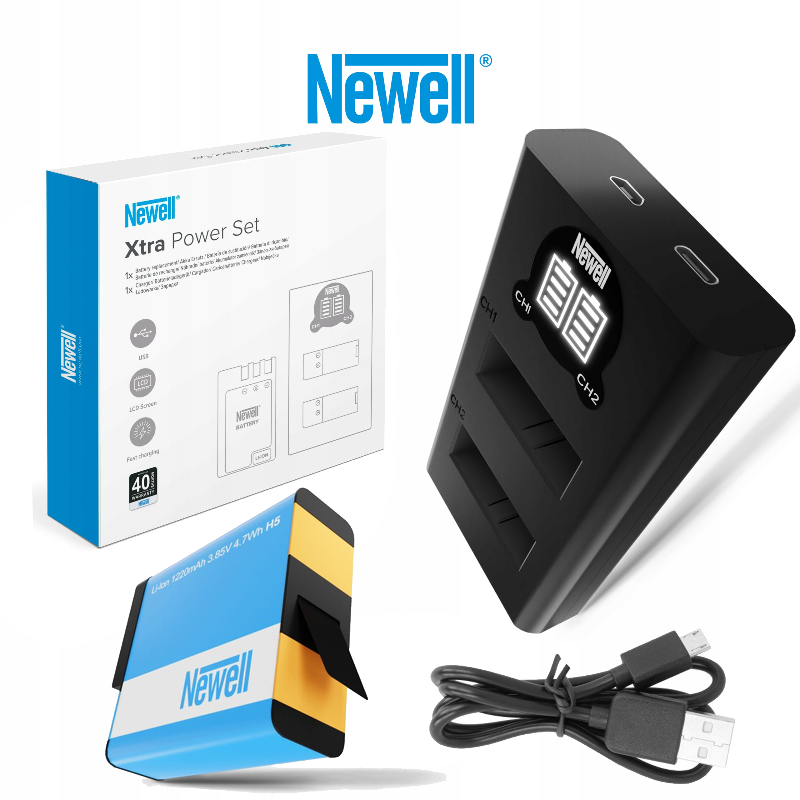 Zestaw, w którego skład wchodzi ładowarka dwukanałowa Newell DL-USB-C oraz akumulator AABAT-001 to wszystko, czego potrzebujesz, aby przygotować się na długie godziny pracy kamerą GoPro HERO 5