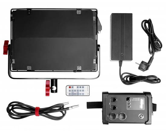 W warunkach studyjnych lampa może być zasilana z prądu sieciowego przy użyciu załączonego zasilacza. Podczas pracy w terenie jako źródło energii wykorzystać można akumulator z mocowaniem Sony V-mount (nie wchodzący w skład zestawu).