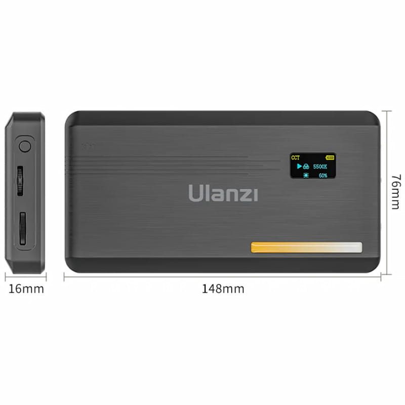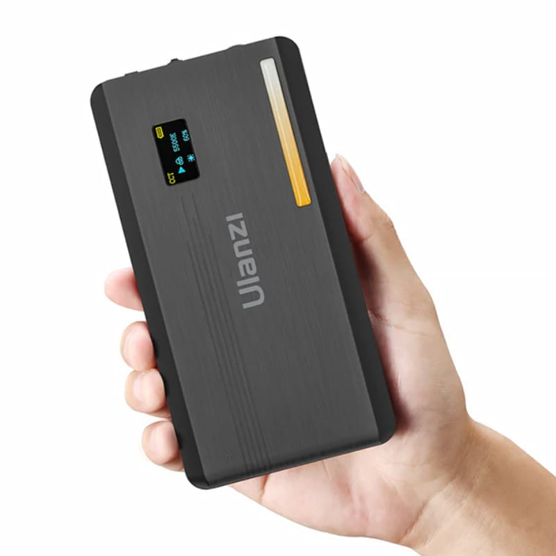 Ulanzi VL200 to kompaktowa i wydajna lampa diodowa LED, zaprojektowana z myślą o oświetlaniu niewielkich scen. Prostokątny panel o wymiarach 148 × 76 mm składa się z dwóch rodzajów diod – ciepłych, emitujących światło o temperaturze 2500 K oraz zimnych, odpowiedzialnych za barwę 9000 K. Swobodna regulacja mocy i temperatury barwowej pozwala uzyskać naturalny efekt światła dziennego. Do zmiany ustawień służą dwa pokrętła funkcyjne, umieszczone z boku obudowy. Precyzyjną kontrolę światła zapewnia niewielki wyświetlacz OLED.