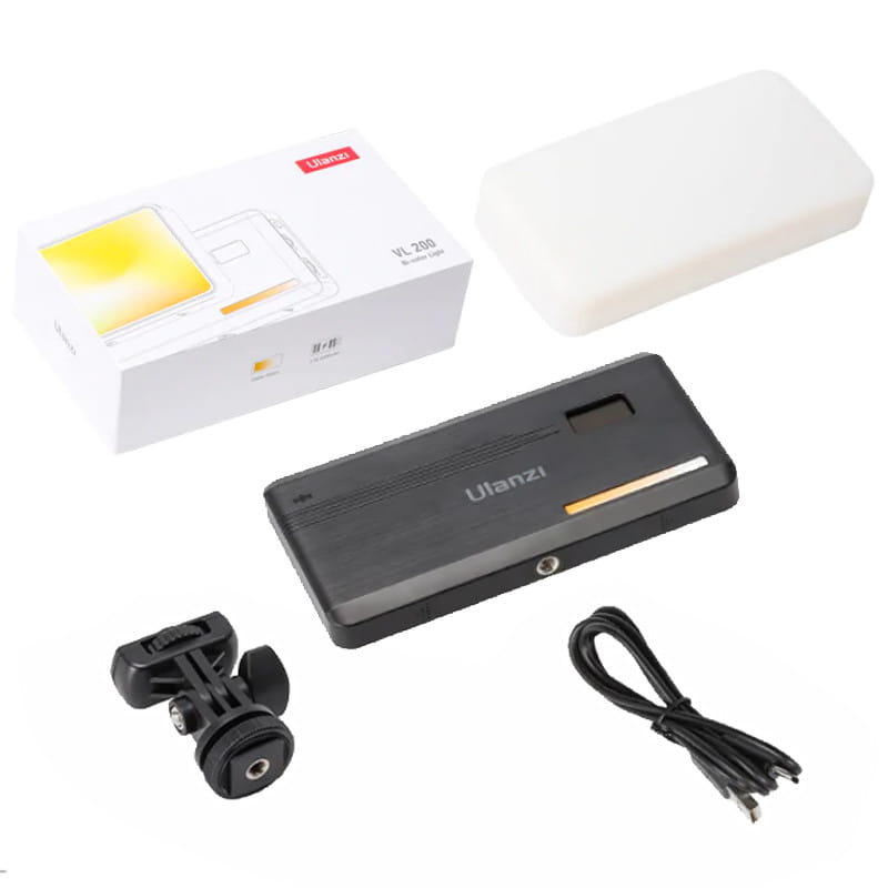 VL200 to niewielka lampa diodowa LED marki Ulanzi, wyposażona w akumulator o pojemności 5000 mAh i ładowana przez port USB. Oferuje atrakcyjne światło CCT, którego moc i temperatura barwowa w zakresie 2500-9000 K mogą być regulowane. W komplecie silikonowy dyfuzor oraz przegubowy adapter na stopkę ISO i gwint 1/4’’.