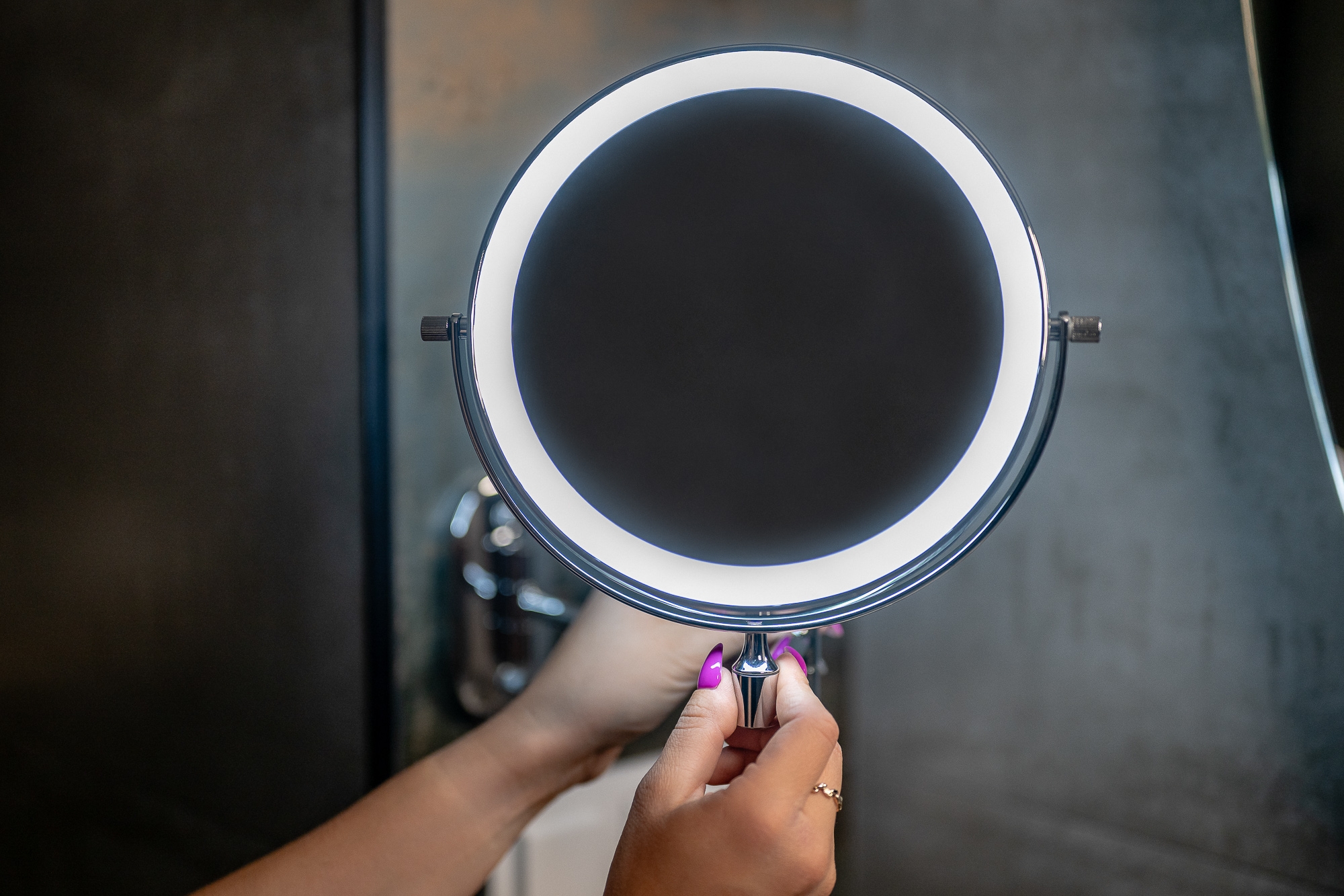 Srebrne lustro łazienkowe Humanas HS-BM01 z podświetleniem LED może być obracane w zakresie 360º. Dzięki temu jego kąt nachylenia może być precyzyjnie dostosowany do Twoich bieżących potrzeb. To jednak nie wszystko. Jedna z dwóch podświetlanych tafli lustra oferuje 5-krotne powiększenie, które sprawi, że podczas zabiegów pielęgnacyjnych nie umknie Ci żaden detal!