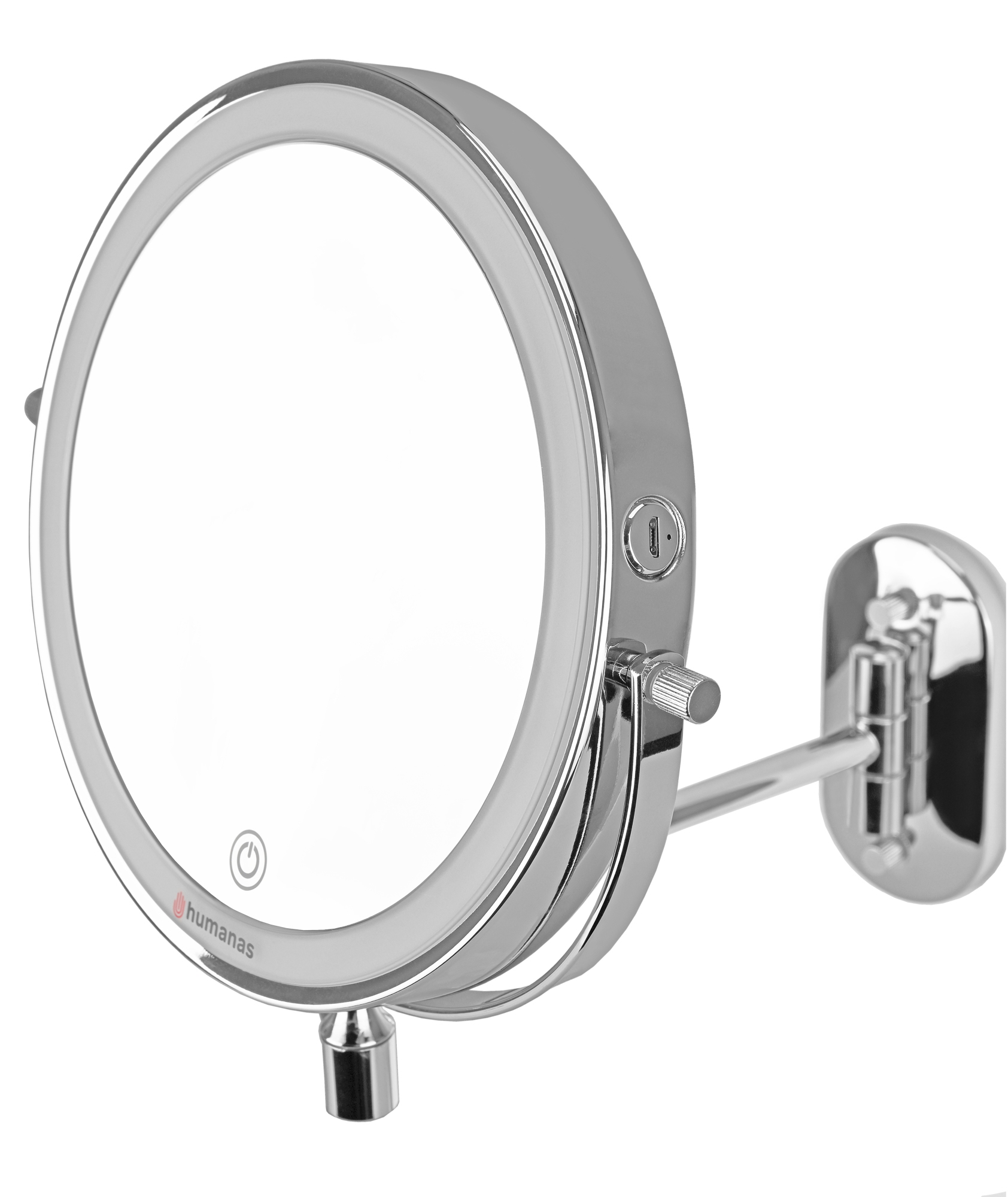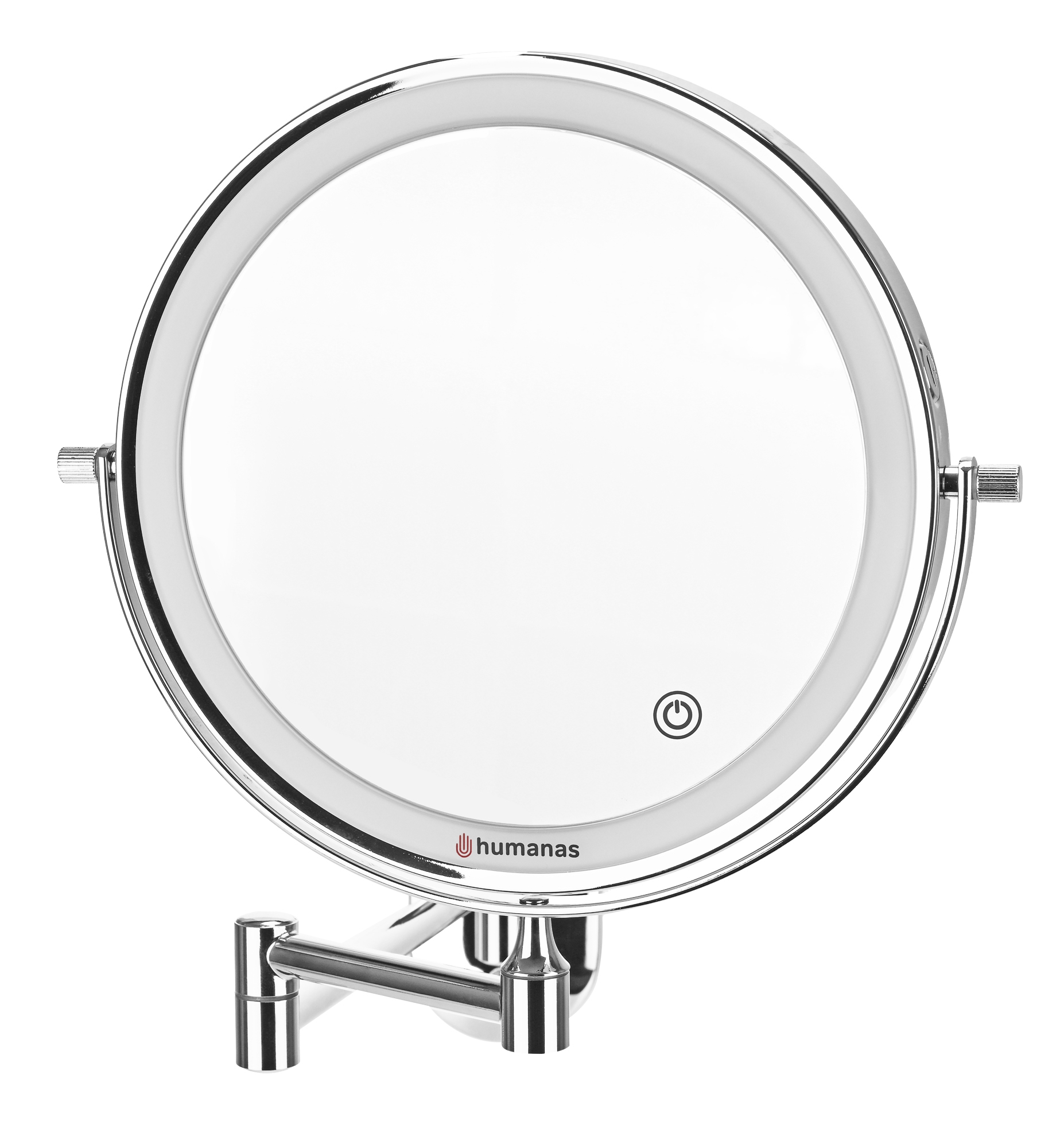 Srebrne lustro Humanas HS-BM01 z podświetleniem LED to idealny wybór do dużych i małych łazienek. Zastosowanie przegubowego uchwytu pozwoli Ci zaoszczędzić przestrzeń, a także precyzyjnie dostosować ustawienie całej konstrukcji do potrzeb codziennej pielęgnacji twarzy. Obie strony lustra wyposażono w mocne ledy, które zapewnią równomierne oświetlenie podczas wykonywania make-upu lub golenia. Dodatkowo designerski wygląd z pewnością doda Twojej łazience stylu i nowoczesnego charakteru.