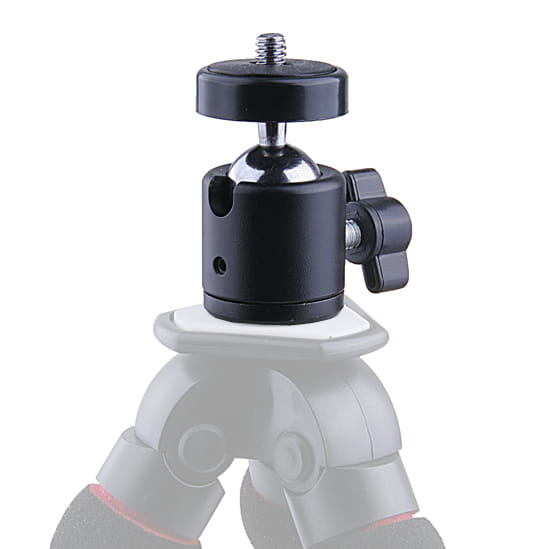Mini Mała głowica kulowa z gwintem 1/4 cala. Wykonana niezwykle z wysokiej jakości metalu z elementami plastikowymi . Kulowa regulacja położenia pozwala na pochylenie w dowolnym kierunku. Istnieje również możliwość pochylenia głowicy o 90 stopni.