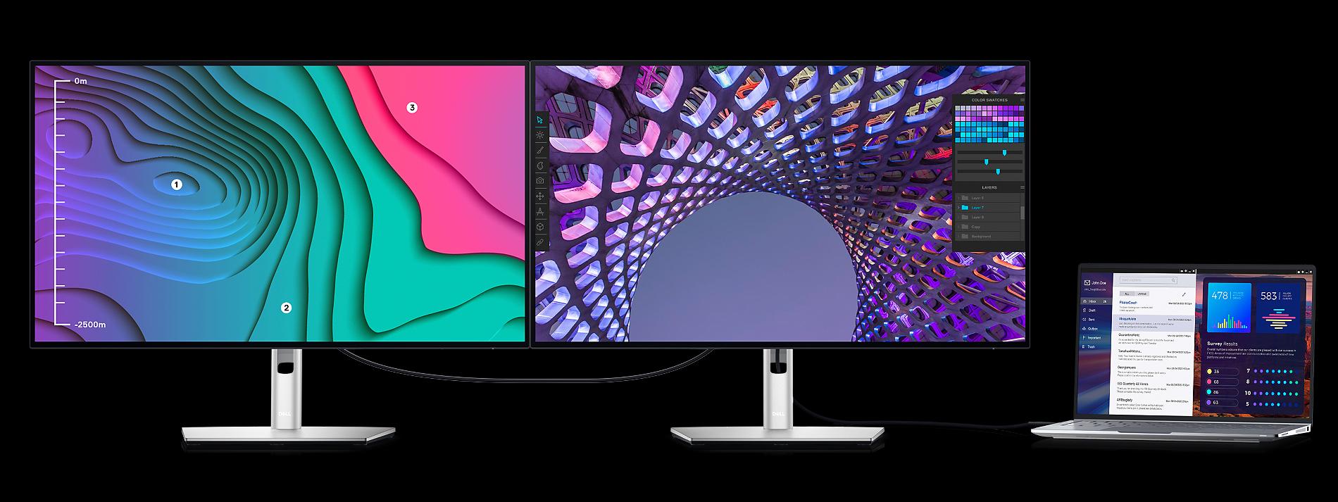 Pracuj z najwyższą wydajnością dzięki monitorowi 27”, który zapewnia doskonałe kolory i kontrast, jako pierwszy w branży obsługuje technologię IPS Black oraz służy jako centrum łączności.