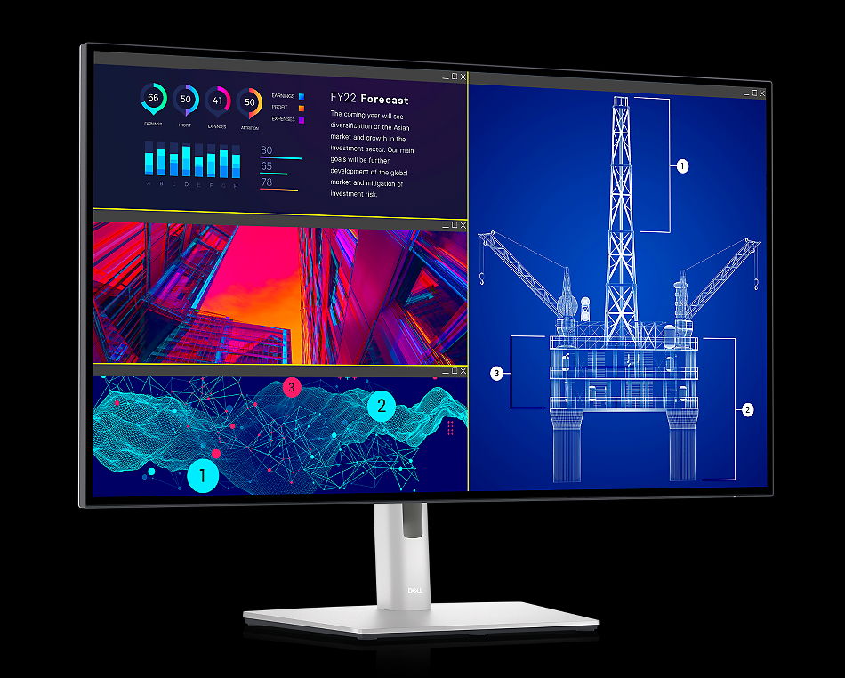 Przemyślana konstrukcja: ten monitor świetnie pasuje do każdego miejsca pracy dzięki wykończeniu klasy premium w kolorze Platinum Silver oraz systemowi rozmieszczania kabli, który ułatwia utrzymanie porządku.
