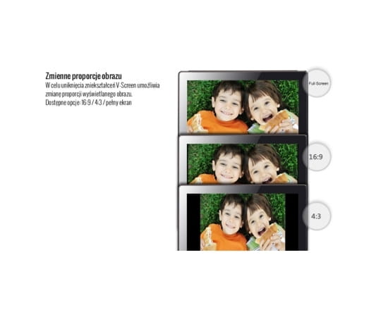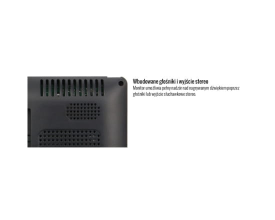 Monitor posiada rozdzielczość 800x480 z możliwością zmiany proporcji do 16:9 lub 4:3, wysoką jasność 400 cd/m2, oraz kontrast 500:1.