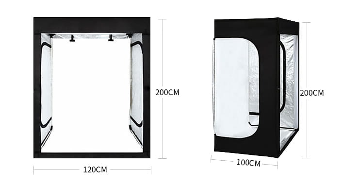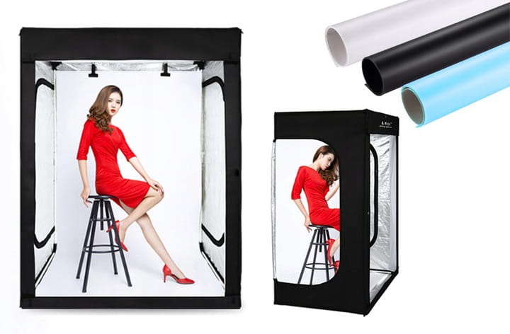 Duży namiot fotograficzny z lampami LED, będący jednocześnie w pełni mobilnym, przenośnym studiem fotograficznym - dzięki ogromnej przestrzeni, którą oferuje, jest idealnym rozwiązaniem przy fotografii przedmiotów średniego i dużego gabarytu, ubrań (na wieszakach lub manekinach), zwierząt oraz ludzi! Wysokość 200cm w zupełności wystarcza do objęcia całej postaci w pozycji stojącej lub siedzącej.