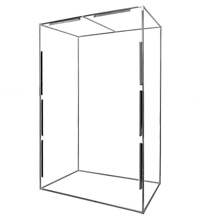 Namiot posiada w pełni demontowany stelaż, na który naciąga się wierzchnią warstwę grubego, czarnego materiału. Następnie do wewnątrz wpina się listwy LED (łącznie 8 sztuk), osłania je tkaniną dyfuzyjną i montuje tło w wybranym kolorze. W zestawie znajduje się komplet elementów montażowych, listwy LED wraz z zasilaczami oraz żabki, umożliwiające łatwe zamontowanie wybranego przedmiotu wewnątrz.