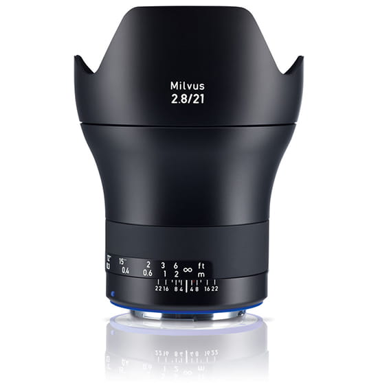 Obiektyw charakteryzuje przesłona f/2,8 i konstrukcji złożona z 16 elementów w 13 grupach. Gwarantuje ona rewelacyjne osiągi już od maksymalnego otworu przesłony i znakomitą korekcję aberracji. Soczewki obiektywu pokryte zostały słynnymi powłokami Zeiss T* dzięki czemu osiągniętą znakomitą transmisję dla wszystkich składowych widma, co przekłada się na doskonałą reprodukcję barw i pracę pod światło. Obiektyw skutecznie eliminuje niepożądane refleksy świetlne i flary. Pomimo szerokiego kąta widzenia, Milvus 21 mm f/2.8 nie wykazuje zniekształceń geometrycznych, dzięki czemu znakomicie sprawdzi się w fotografii architektury.