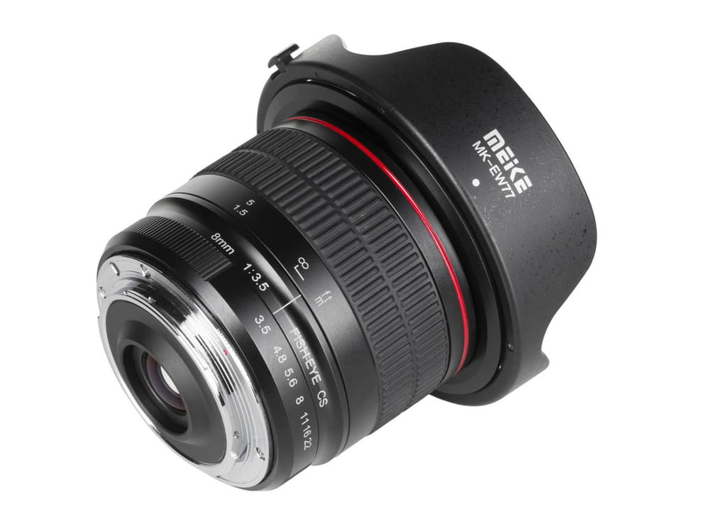 Meike MK-8 mm f/3.5 to obiektyw typu rybie oko, który dzięki kątowi widzenia równemu 200 w poziomie i 160 w pionie pozwoli na ciekawe przerysowania perspektywy. Na jego układ optyczny składa się 11 soczewek umieszczonych w 8 grupach, które pozwolą na ostrzenie już odległości 10 cm. Soczewki zostały dodatkowo pokryte powłokami antyodblaskowymi.