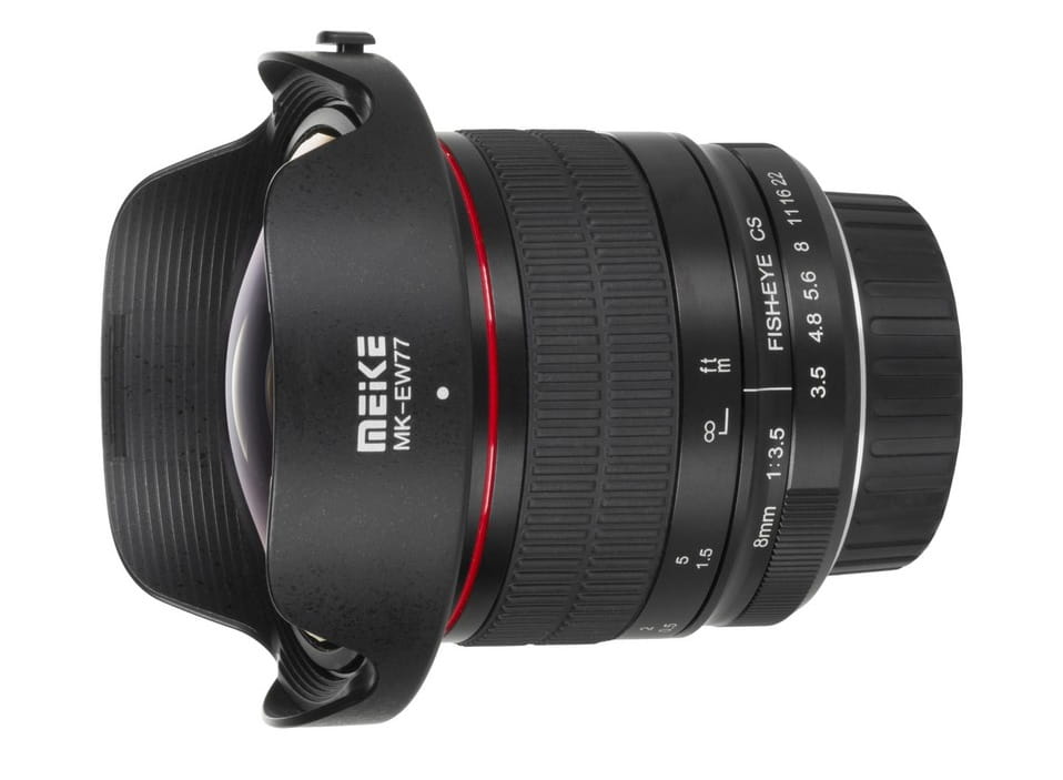 Meike MK-8 mm f/3.5 to obiektyw typu rybie oko, który dzięki kątowi widzenia równemu 200 w poziomie i 160 w pionie pozwoli na ciekawe przerysowania perspektywy. Na jego układ optyczny składa się 11 soczewek umieszczonych w 8 grupach, które pozwolą na ostrzenie już odległości 10 cm. Soczewki zostały dodatkowo pokryte powłokami antyodblaskowymi.