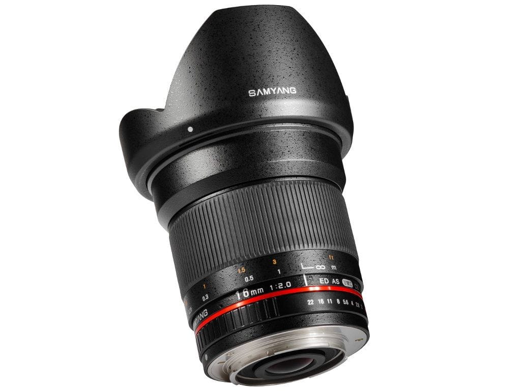Stałoogniskowy, jasny i wyjątkowo szerokokątny obiektyw 16 mm (25.6mm to ekwiwalent dla formatu 35mm) ze światłem f/2.0 firmy Samyang został zaprojektowany pod aparaty z matrycą APS-C. Przeznaczony zarówno do lustrzanek cyfrowych, jak i aparatów kompaktowych z wymienną optyką. Oferuje zakres przesłon f/2.0 - 22, manualny autofocus oraz ostrzy już od 0.2 metra.